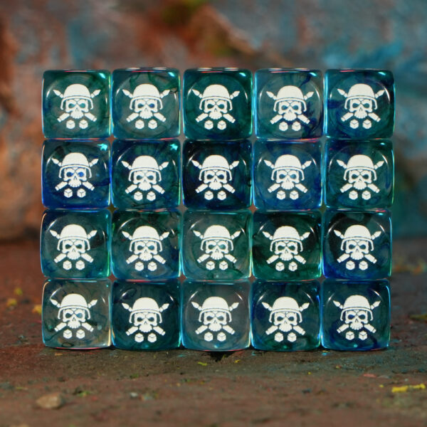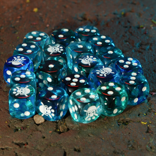 Harness the ephemeral power of the Azure Blaze at the table and change your luck on the battlefield. These dice have colours that dance in the light and flicker on the tabletop, featuring a translucent, blue flame finish. They come as a set of 20 16mm plastic dice with the Tabletop Tactics logo engraved on the 6 pips.