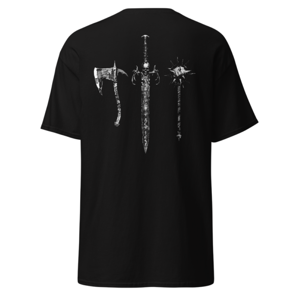 Prepare to don the heaviest threads on the battlefield! Featuring a triple weapon motif on the back, the central sword’s blade is engraved with Tabletop Tactics. On the front, a spiked mace pocket logo hits hard with the Heavy Metal slogan.