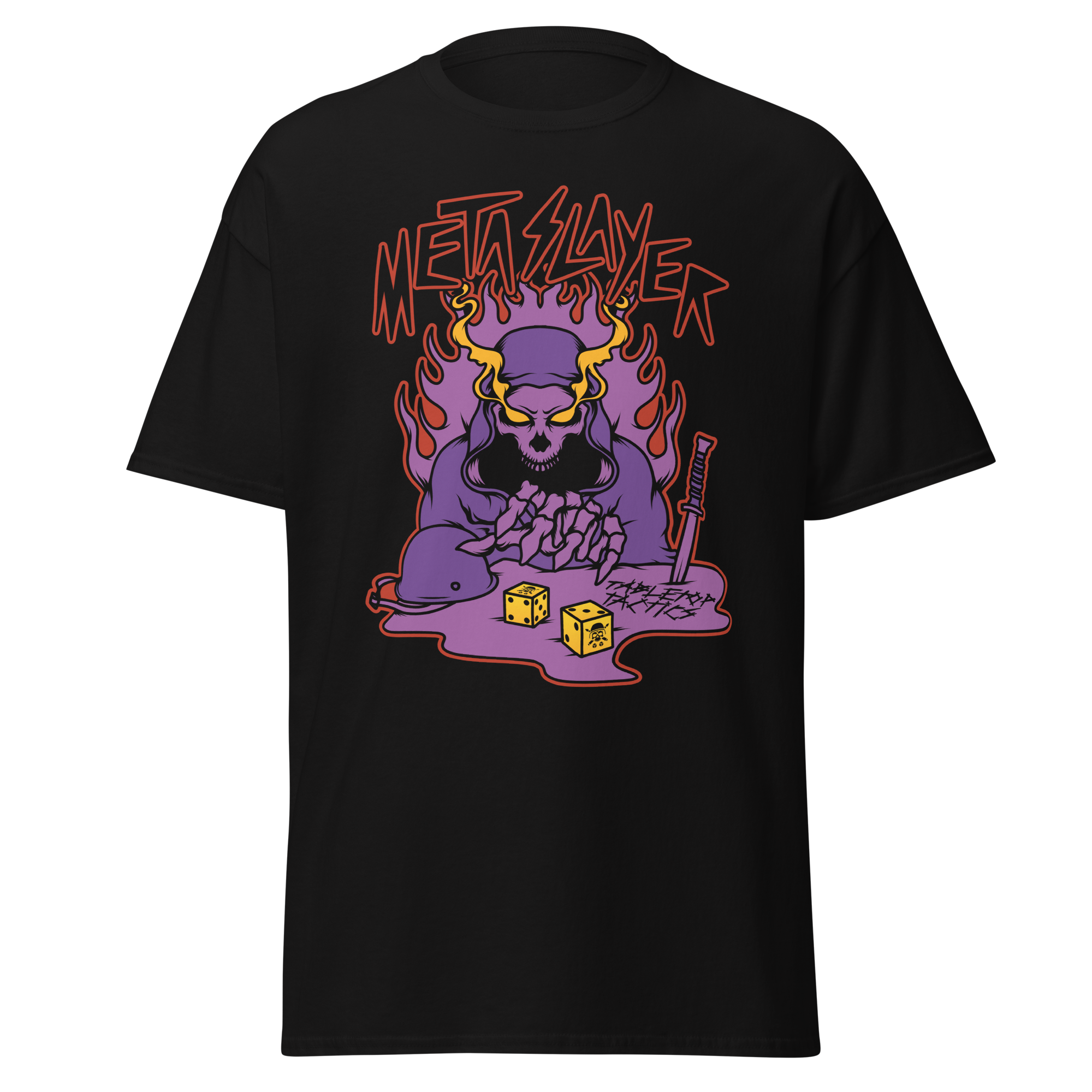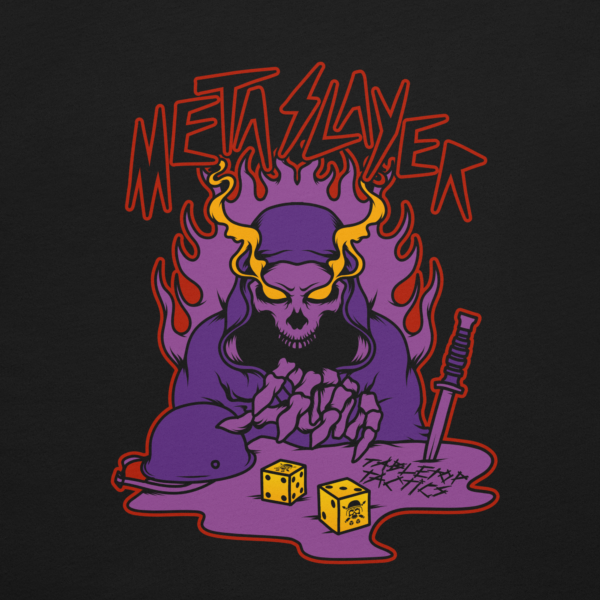 Command your own fate and Slay the Meta in this fashionable collector’s Tee! Featuring our Eternal Warrior emblazoned on the chest in a retro print that is sure to turn heads. The 100% cotton classic tee sits nicely and maintains sharp lines around the edges.