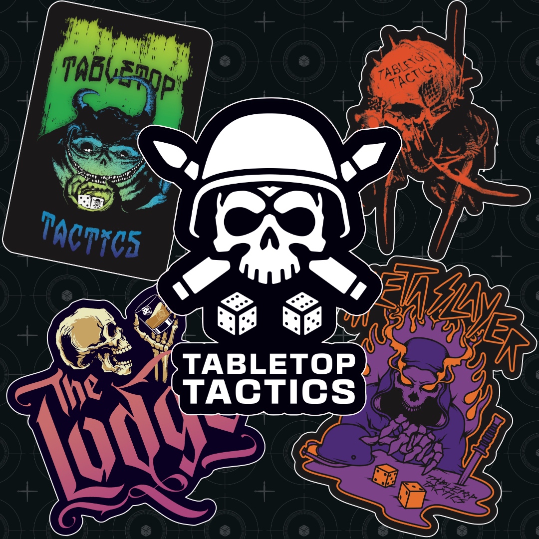 Grab 5 super-sticky stickers featuring your favourite Tabletop Tactics icons: the fan-favourite Cyber Skull, the vibrant Lodge Bar logo, our mischievous pal Toxic Grotty, the demonic Metaslayer, and of course our classic Skull Logo. Perfect for travel cases, hobby stations, or anywhere that needs a blast of Tabletop Tactics style. Stick ’em, swap ’em, share ’em!